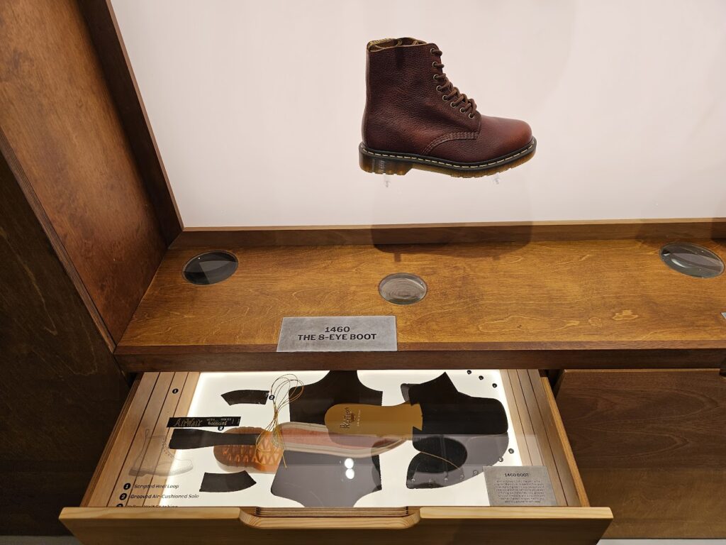 Blending British craft and Scandinavian aesthetics. Using local natural materials. Partitions arr created through heavy wool panneling sourced from Yorkshire, while blackened iron provides detailing througout. Across the space, inviting zoning is created in order tp contain the brand's different categories.