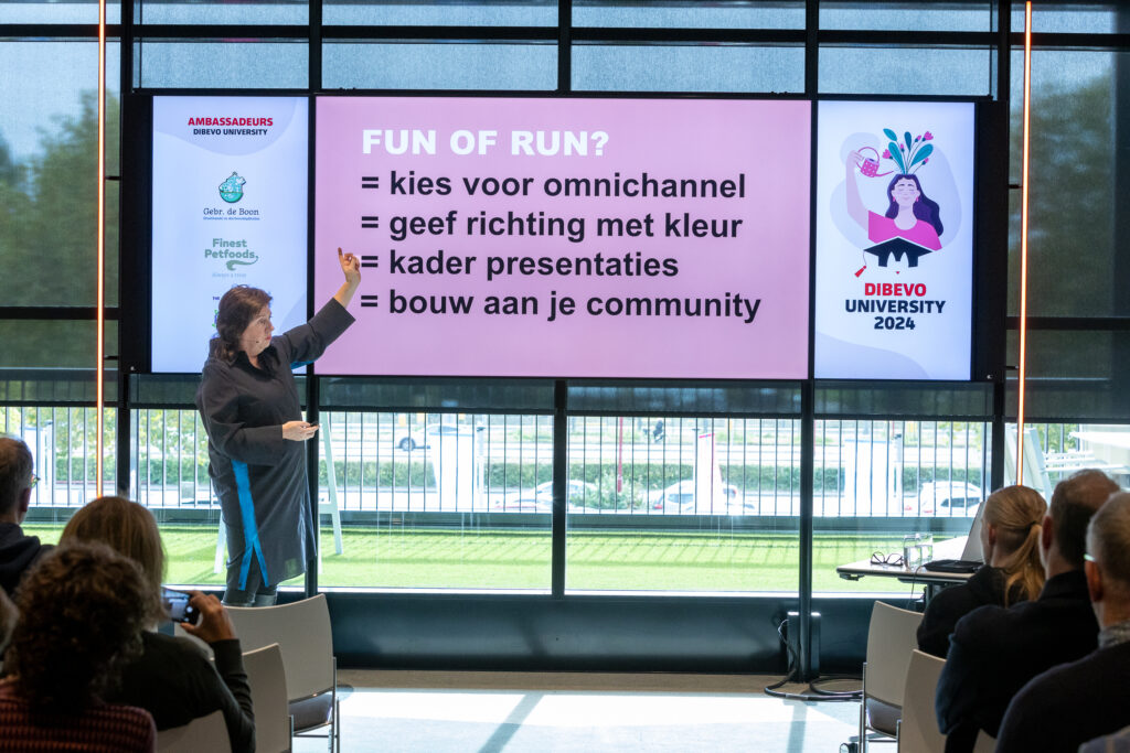 Een ander belangrijk aandachtspunt voor de toekomst van fysieke winkels is het zorgvuldig vormgeven van onze winkels met een sterke focus op de kernvraag; is de consument op zoek naar snelheid en gemak of juist naar extra beleving? Hiervoor heeft retailprofessional Carin Frijters tijdens haar Dibevo-talk twee concepten geïntroduceerd: RUN en FUN.