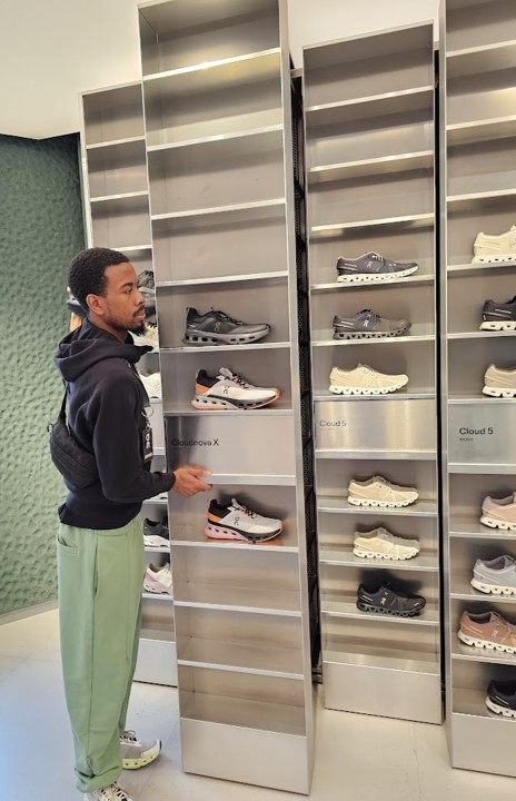 Hoe vaak hebben we klanten zien verdwalen tussen de schappen, overweldigd door het aanbod? De moderne consument heeft geen behoefte aan chaos. Daarom moeten we kiezen voor een heldere en overzichtelijke indeling. Dit betekent minder producten, maar een slimmere presentatie. Bij het nieuwe concept van sneakermerk ON zien we dit al: de voorraad is slim weggewerkt achter een schuifwand, terwijl de sneakers overzichtelijk worden getoond op een displaywand.